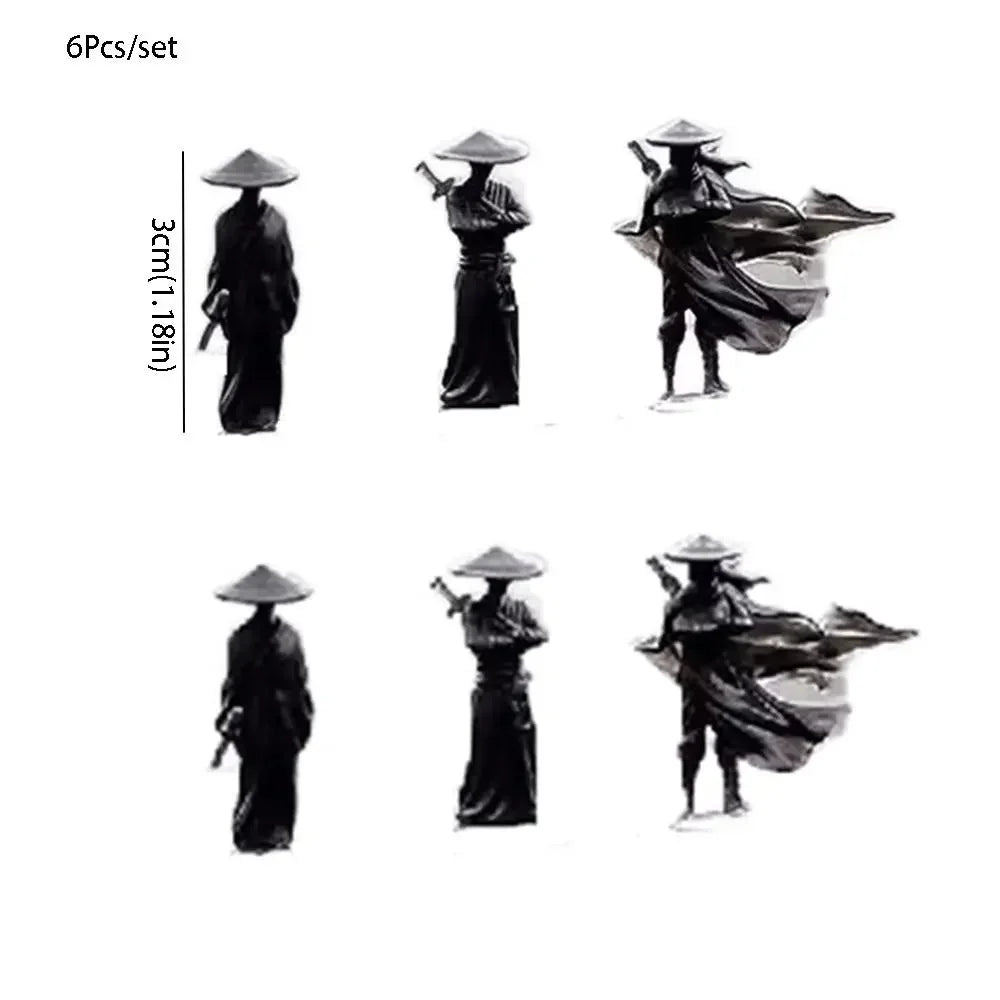 6Pcs/set Model Mini Chinese Swordsman Figure Exquisite Ancient Car Statue Ornament Cartoon Swordsman Miniatures Bedroom